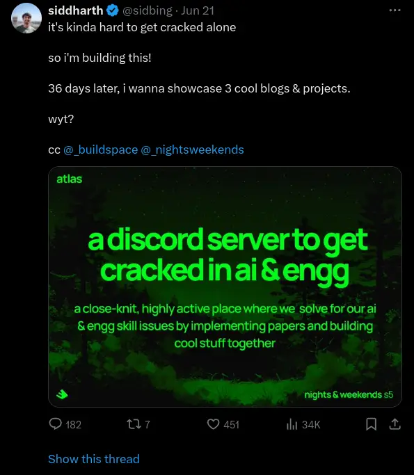 i built epoch0, a discord server for people in a similar position to study math, ml, ai agents together - mostly because i wanted to surround myself with people studying the same things i was.