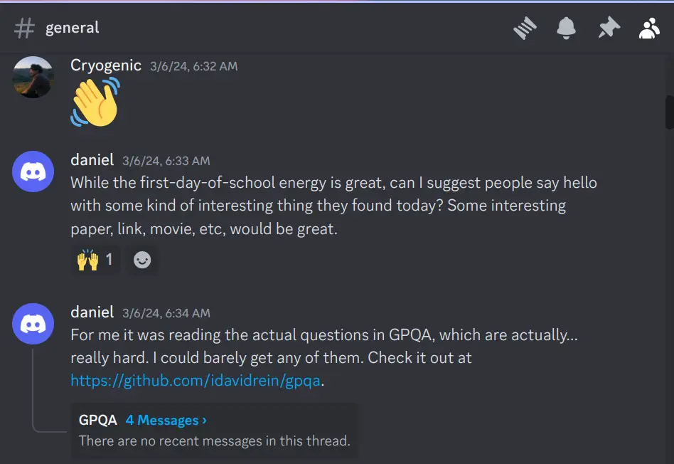 it currently has 178 people in it; gpt whisperers, machine learners, ai builders, math nerds; the whole shebang.