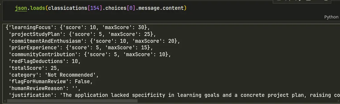 a little bit of back and forth and i made it generate a system and user prompt for gpt-4o with an evaluation document, input format of the form entry and a JSON schema for the results.