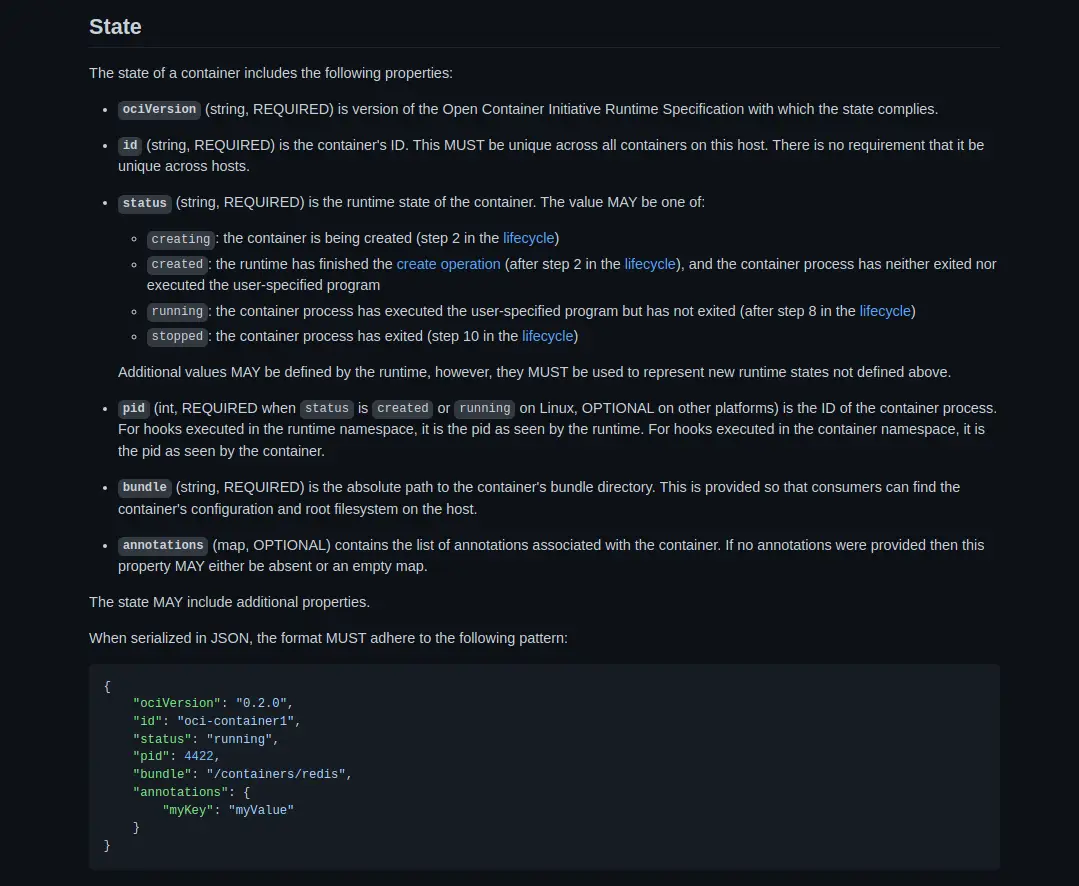 So if you one day decided to make a docker killer and next-gen Kubernetes killer container orchestration daemon/client, you would have to adhere to the OCI specifications.