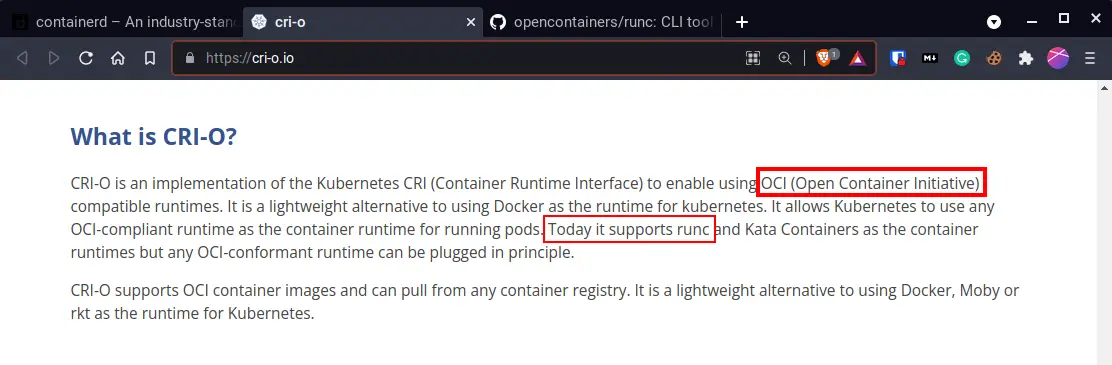 Both, containerd and cri-o list OCI specification through using runC. But, aren’t they container runtimes too? And isn’t runC another container runtime?