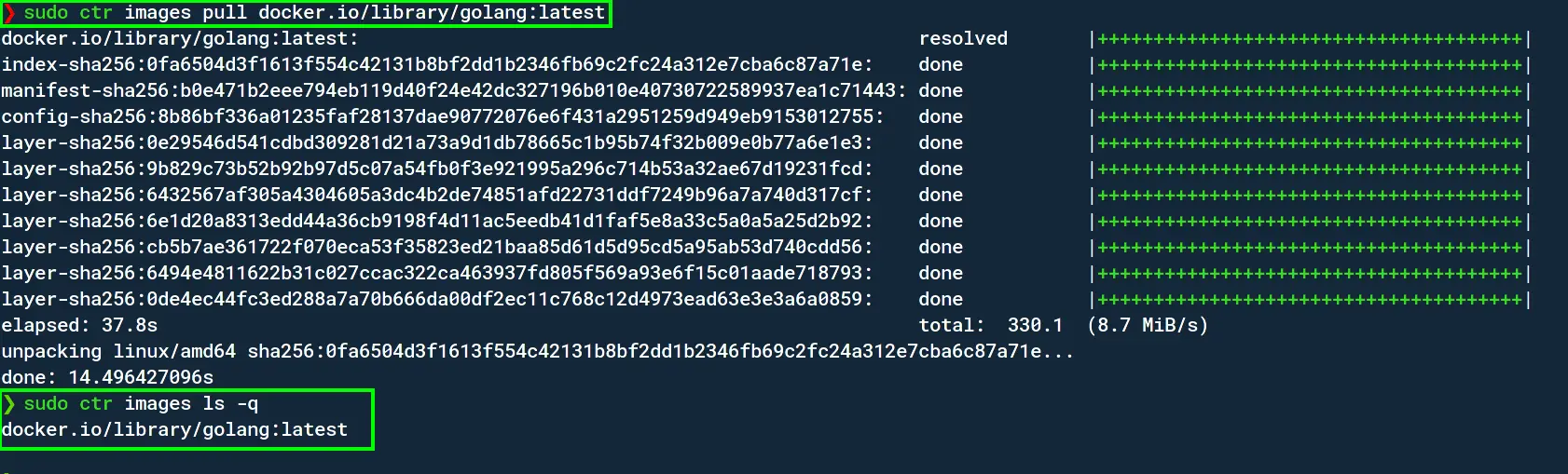 sudo ctr images pull docker.io/library/golang:latestYou can list the images using;