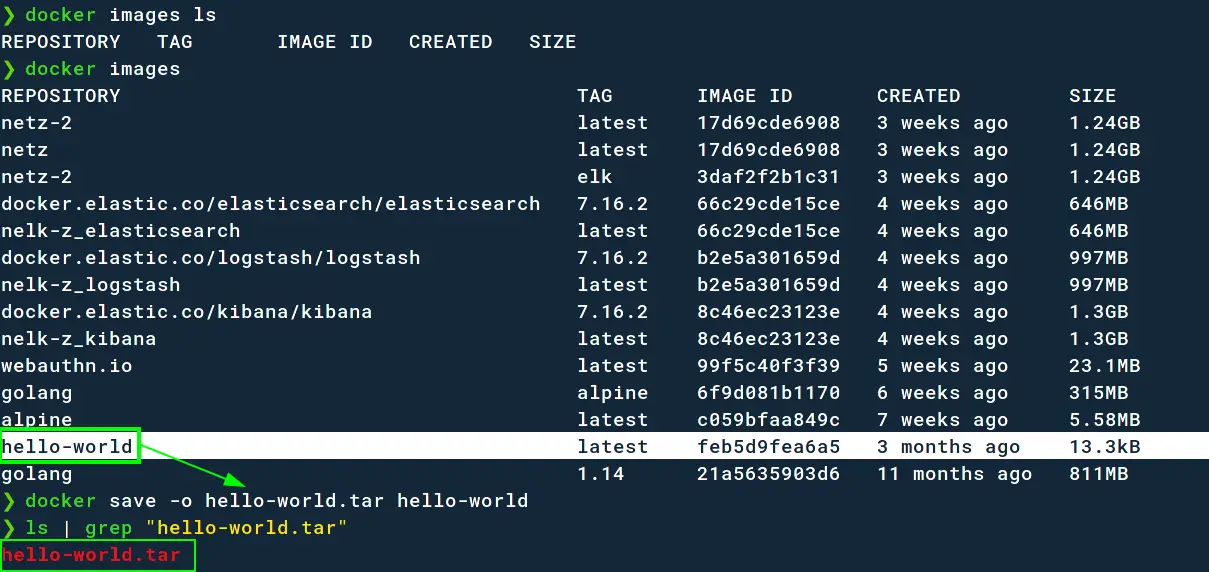 docker save -o hello-world.tar hello-world