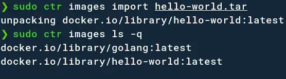 sudo ctr images import hello-world.tar